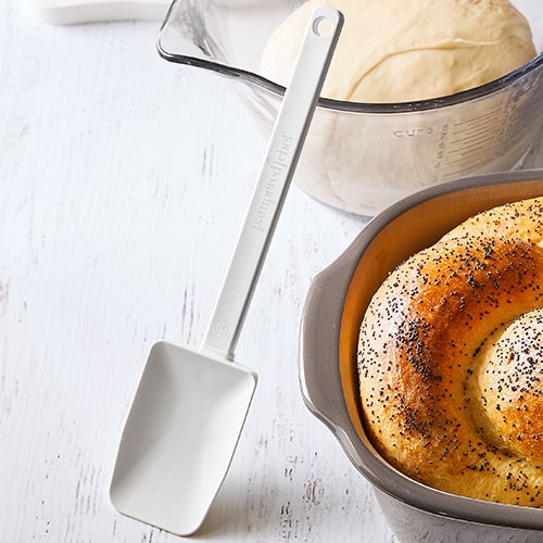 Der Kleine Mix N Scraper Schaber von Pampered Chef ist der Allrounder für deine Küche. Er kombiniert die Flexibilität eines hochwertigen Silikonschabers mit der Funktionalität eines stabilen Löffels – perfekt zum Mischen, Schaben, Portionieren und Servieren.