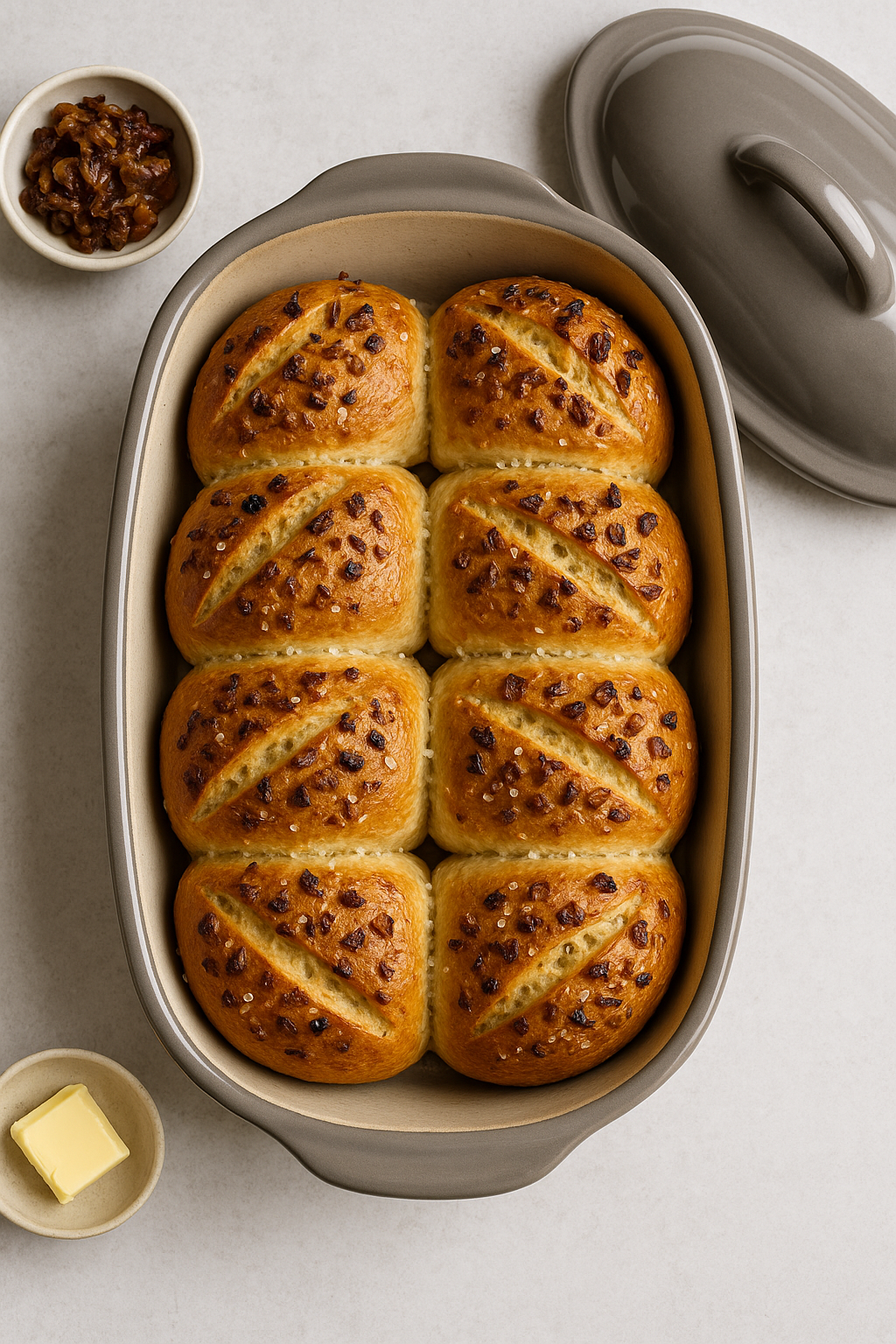 Warm aus dem Ofen, duftend nach gerösteten Zwiebeln und Butter. Diese Zwiebelbrötchen sind pure Herzensküche.